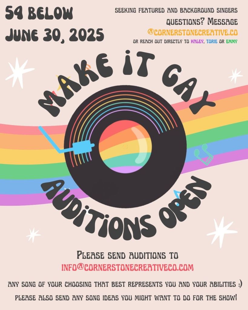 AUDITIONS ARE NOW OPEN!! Preference given to those in the LGBTQ+ community, but we welcome all to send in auditions!